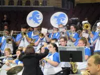 Sixteen students in the band are recipients of a Pep Band Scholarship. The scholarship is $3,000 per year for 4 years, awarded $1,500 per semester.