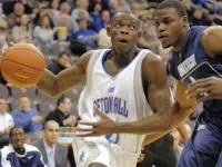 Seton Hall extended the lead to 37-31 after a Paul Gause (Pittsgrove, N.J.) rebound and long outlet pass to senior Brian Laing (Bronx, N.Y.) for a dunk. Jerome Dyson drilled a triple from the wing to cap a 7-2 run that put the Huskies ahead, 44-43, but Davis nailed a jumper to give the lead right back to Seton Hall as the Pirates held a one-point edge at the break.