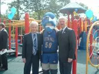 NEWARK The Seton Hall Pirate helped the youngsters at Newton Street School celebrate the opening of a new community playground on the afternoon of October 6th and the ribbon cutting ceremony demonstrated what can happen when people work together.