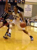 Down 30-18, the Hall made a charge in the final four minutes of the first half. Green sank a pair of free throws, followed by a bucket from Emery and a three-pointer for junior Ebonie Williams (Hagerstown, Md.) that cut it to 30-25. Green and Emery hit again to make it an 11-0 run, drawing the Pirates to within one with 56 seconds left, and they would go into the break trailing 34-31.