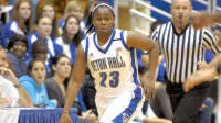 Simmons drained a three from the top of the key for a 12-8 Seton Hall lead with 9:45 to go, and a short jumper from junior Whitney Wood (Santa Margarita, Calif.) stretched the advantage to six. Later, Crew buried a pull-up to make it 18-9, and she kept it at nine moments later with another short bucket from the right wing. Army would rally, however, cutting it to 22-20 on a three-pointer by Nalini Hawkins with 2:03 left, the final score of the half.
