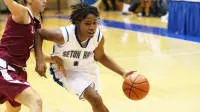 Two possessions later sophomore Alexis Brown (Jacksonville, Fla.) hit a 12-foot jumper as the shot clock expired to put SHU up by four, and just 45 seconds later Richardson-Smith nailed another three, her third of the game, to make it a seven-point Seton Hall advantage.