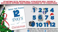 In the holiday spirit, Seton Hall Athletics is offering 12 Days of great Christmas giveaways and deals to our loyal Pirate fans! Visit the Official Seton Hall Pirates Facebook page for the exclusive promotion each day, as we celebrate the 12 Days til Christmas.
