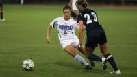Just three minutes later Seton Hall goalkeeper Alyssa Kelly (Southampton, N.J.) made a diving save to keep the Bulls from getting on the scoreboard. Sharla Passariello created space down the right side and sent a hard shot toward the near post, but Kelly dove to her left to make the save.