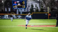 Josh Prevost (Belle Mead, N.J.) relieved Elia to start the frame but after retiring the first batter, three straight Gaels reached to load the bases with one out. Iona went on to tie the score with two singles off Luke Cahill (Tinton Falls, N.J.) but senior Brian Gilbert (Toms River, N.J.) came on with the bases full and two outs and quickly induced an inning-ending grounder to limit the damage.